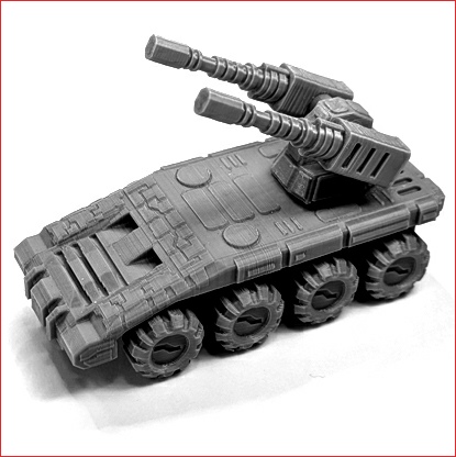 A rugged, wheeled powerhouse built for frontline dominance. Armed with dual gauss cannons and reinforced with kinetic armour, the Siege breaker excels at breaking enemy lines and withstanding return fire. Fast for its size and fearsome up close, it’s the ultimate symbol of the GMF.